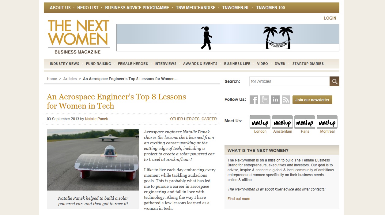 Check out some Lessons Learned for Women in Technology in an online September article for The Next Women Business Magazine.